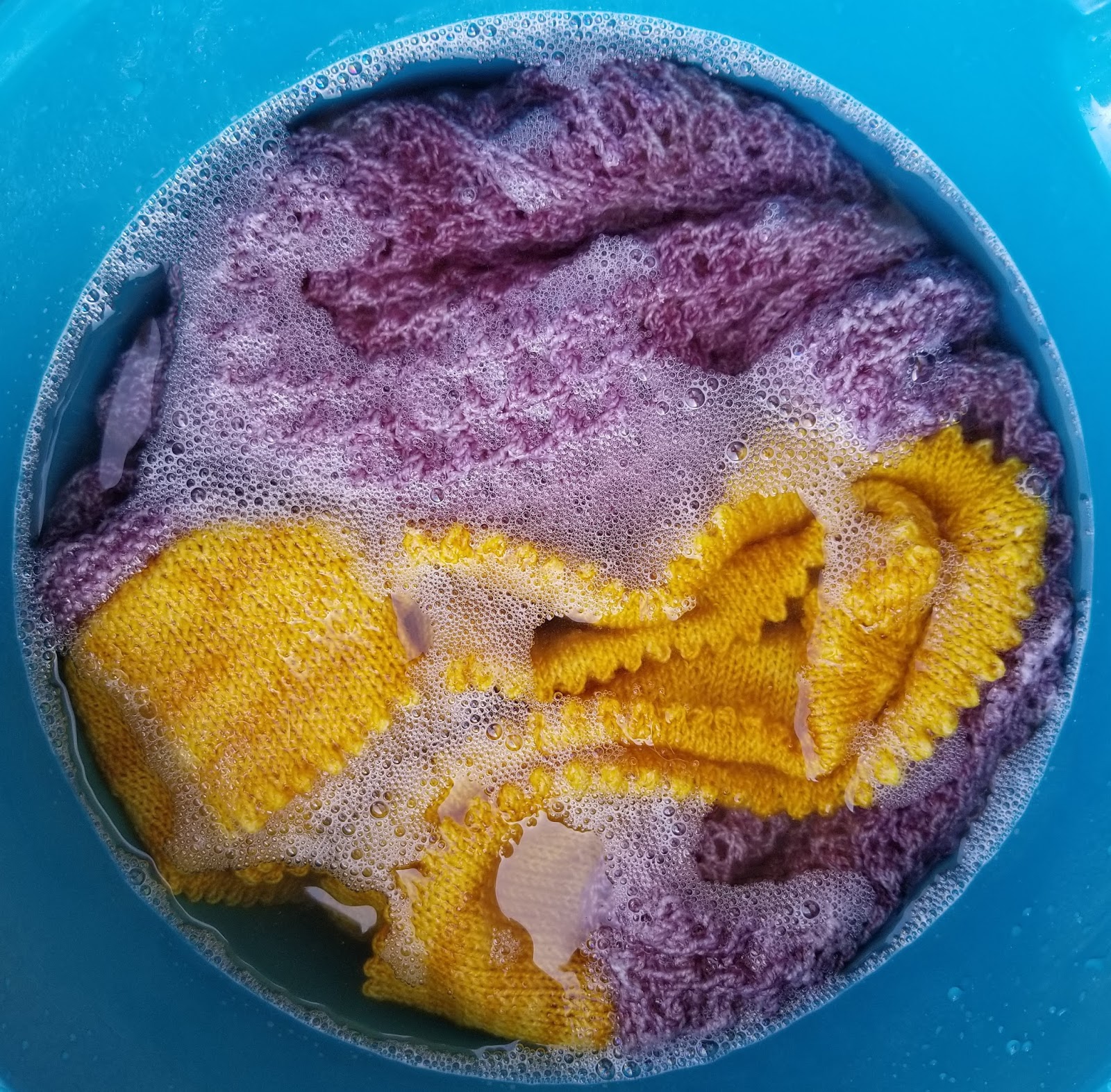 It knits up into a lump and required blocking. I hadn't gotten the blocking bucket out in a long time.